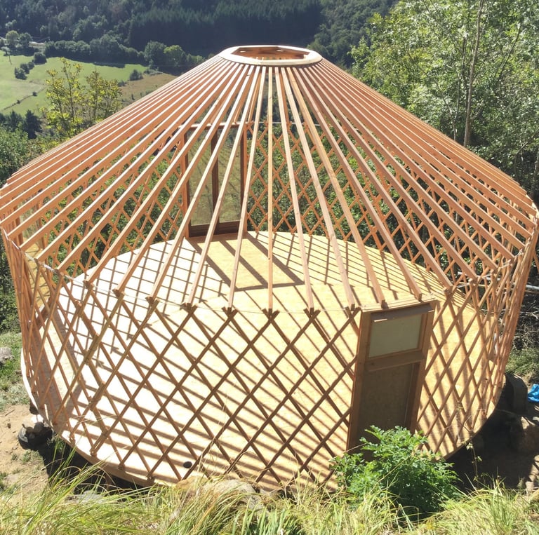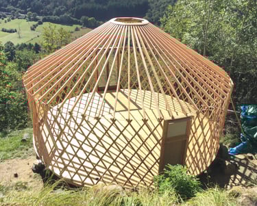 Fabrication yourte : 2 semaines (voir 3, pour 8 et 9 m de diamètre)